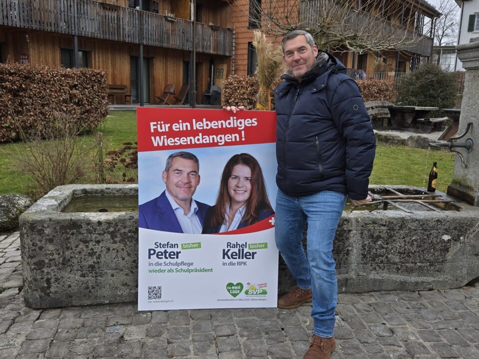 Die SVP Wiesendangen empfiehlt Stefan Peter klar für eine weitere Amtszeit als Präsident der Schulpflege. Seit 2014 in der Schulpflege und seit 2018 als Präsident führt er die Behörde erfolgreich und mit grossem Engagement.